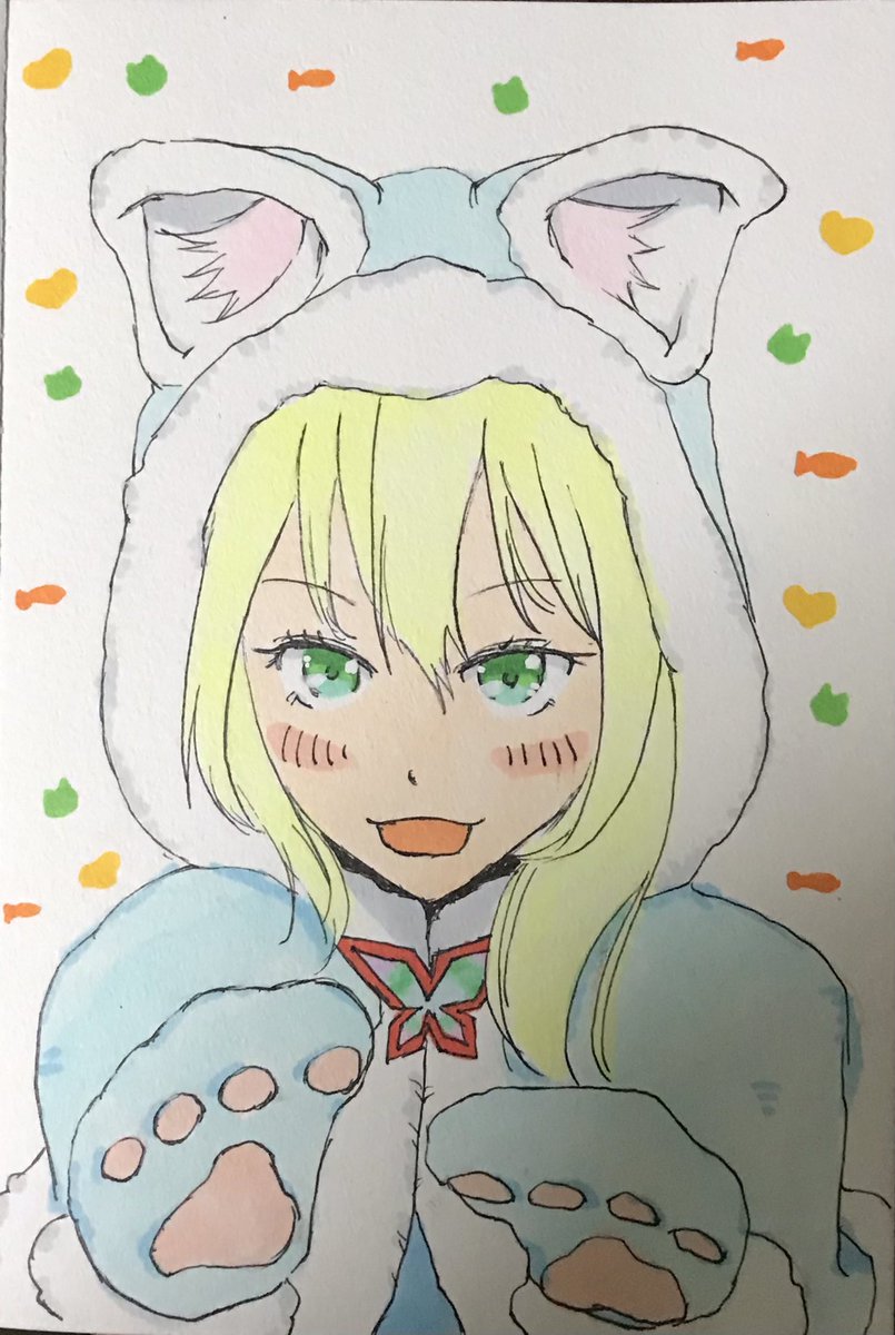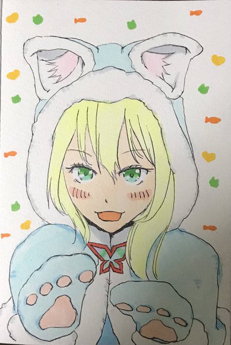 アカリちゃん 【にゃんこver.】 生放送のアーカイブ観ながら絵を描くのが最近のルーティン_φ(・_・ #アカリギャラリー