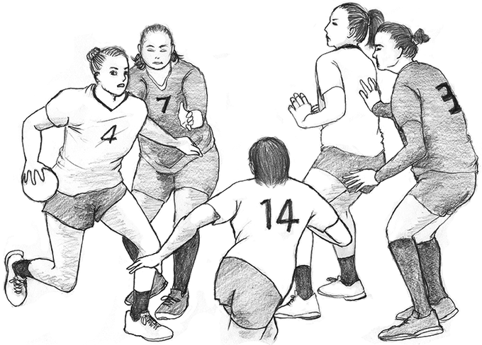 🤾♀️3対3を描きました。この後の展開は...? 📝ハンドボール・クロッキー fanblogs.jp/hbq/ #ハンドボール #クロッキー #スケッチ #イラスト #人物画 #デッサン #ドローイング