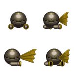 一部の方はPVでご存知かも知れませんが、PBという名の中ボス?です。 大きめな上、実際はこの4枚だけでなく、絵の枚数も多いのでちょっとドット絵が粗め? 高速移動形態と戦闘形態に変型します。 ひっくり返るだけですが。 #スチームパンク #ドット絵