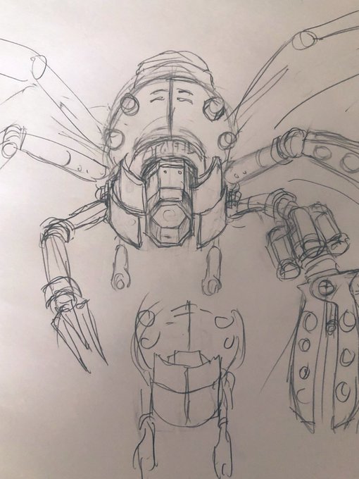 5 14 ステージ1ボスのラフです。 線はドット絵で整えればいいや、って感じなので、基本はアイデア帳程度の落書きです。 22/04/24 08:34