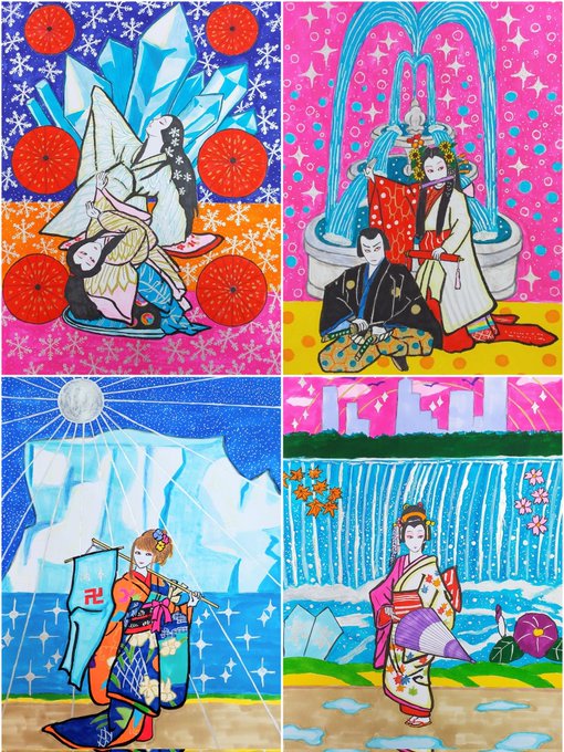 54 418 こんばんは🥰🌃✨ 毎日暑過ぎる日が続いているので、涼しいイラスト4枚をまとめました😊✨ ①雪とクリスタル ②噴水 ③氷河 ④ナイアガラの滝 #イラスト #みんなで楽しむTwitter展覧会 23/07/27 19:14