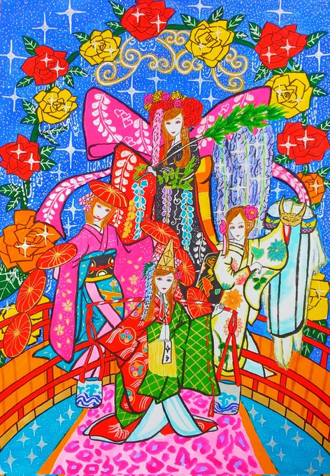 #8月になったのでフォロワーさんに自己紹介しようぜ ギャル系の女の子や歌舞伎の女形をメインに描いています☺️✨ よろしくお願いします😊🎵🎵