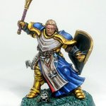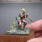 #これを見た人は塗装前と塗装後を貼れ ウォーハンマーのミニチュアは人物で約4,5cm 手のひらよりもちっさいですが、 ちょっとくらいいい筆とルーペ付きスタンドライトが有れば、そろそろ老眼入り出したおじさんでもコレくらいまでは塗る事が出来るらしい