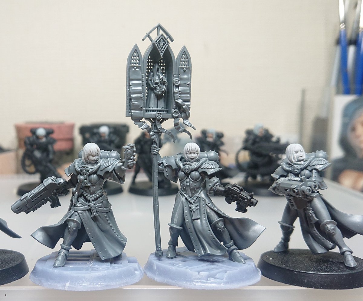 #みなさん去年の今頃はどんな写真撮ってましたか シスターエクソシストとエクスキューソナーセラフィムちゃんとシスターリペンティア(悔恨修道女)ちゃん作ってましたわ #アデプタソロリタス #ウォーハンマー #メガミデバイス