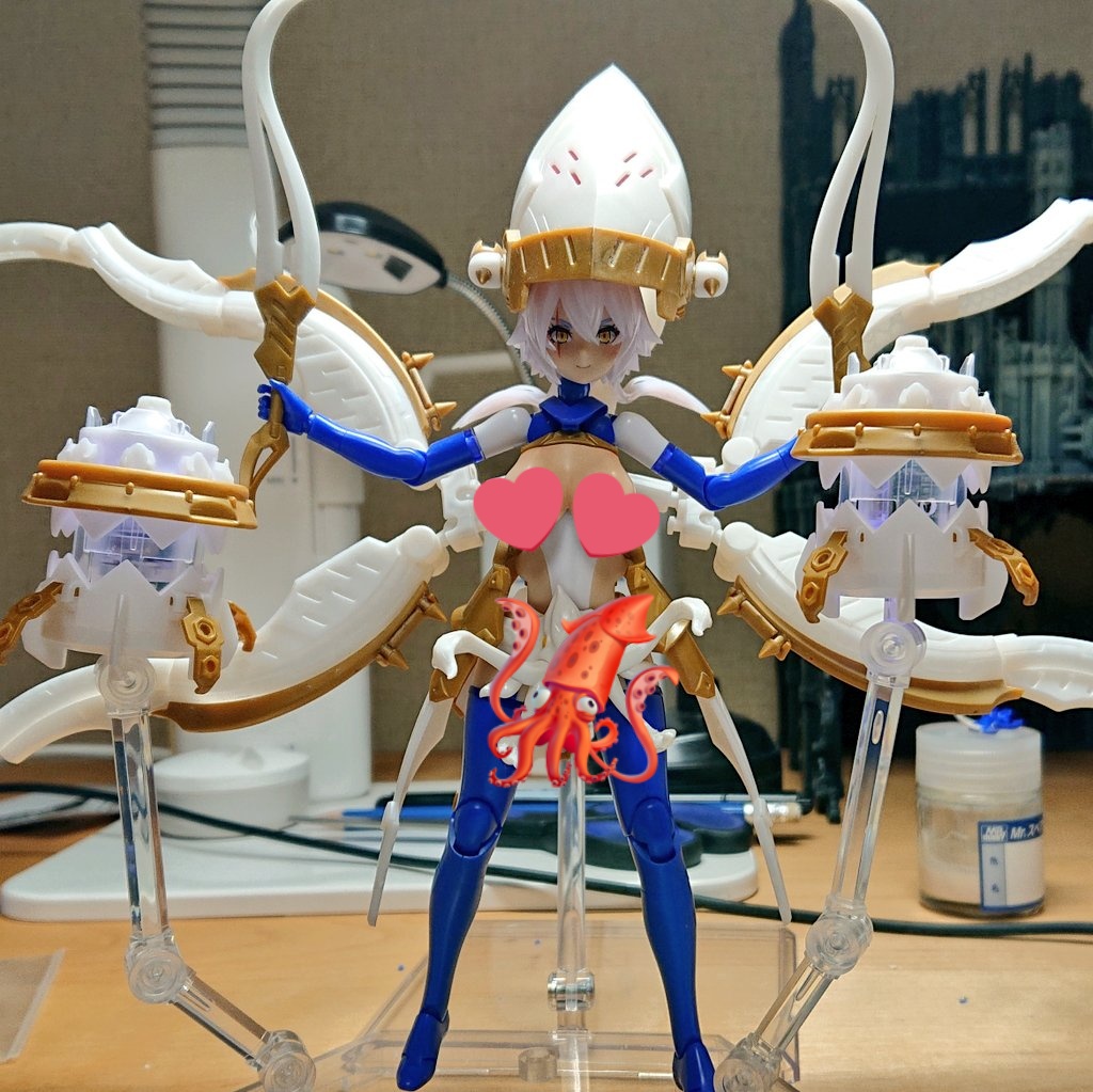 スサノヲ蒼炎の武装パーツがまだ出来て無いのでラーニア用DXパーツポン付け 氷属性から水属性にチェンジ 背負いモノ(ドレス部分)はラーニア本体付属でDXパーツセットにはないのでご注意 #メガミデバイス #ダークアドヴェント