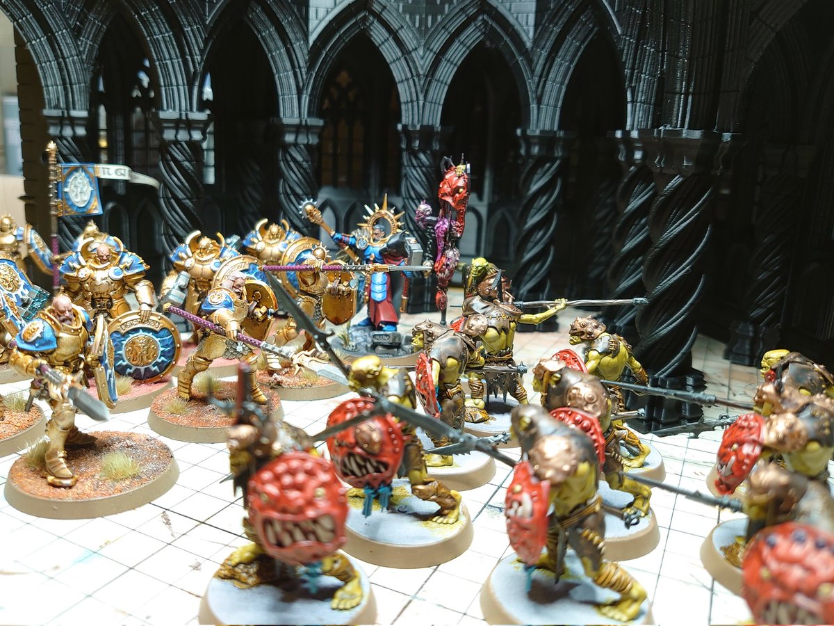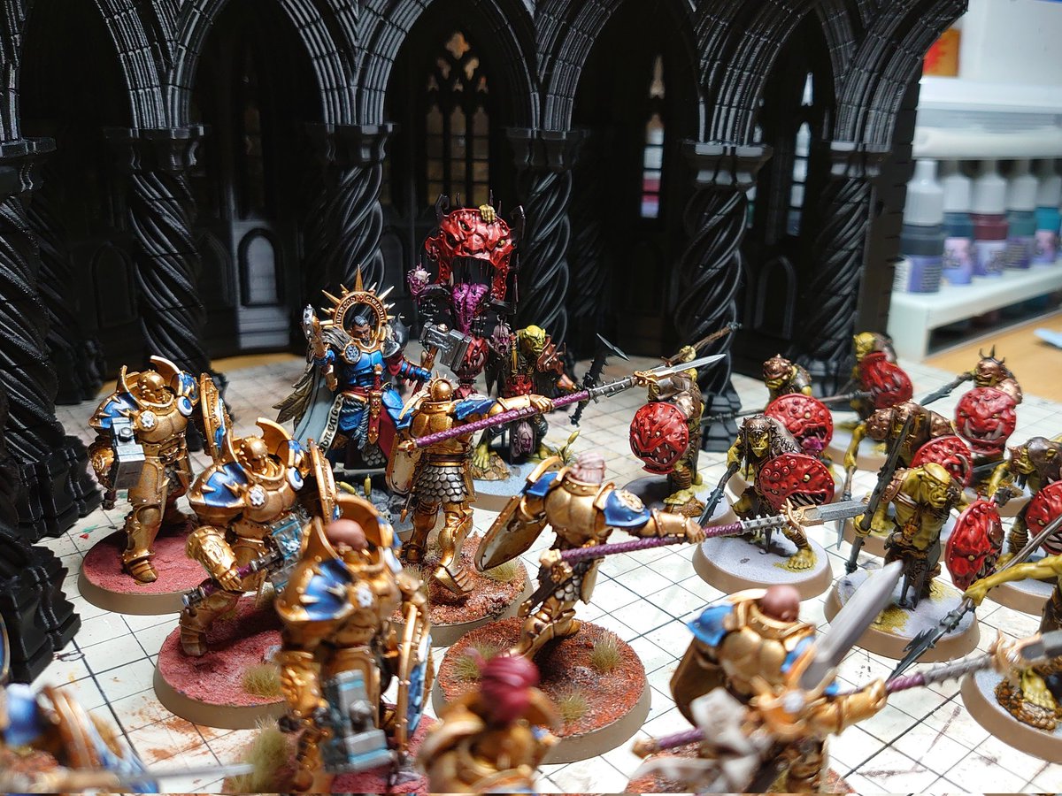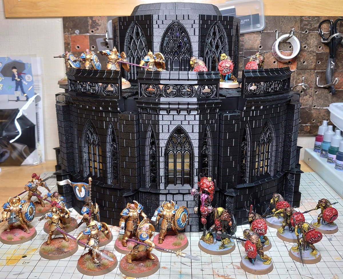 #今月作ったプラモ晒そうぜ ストームキャストとクルールボゥイ合計25体と背景の大聖堂(1キロくらい) プリント時間はほぼ毎日…400時間くらい動かしたハズ 柱から天井へ繋がってくところが気に入っている