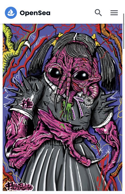 今夜は4作品リスト 推しアイドル中野坂上46 魚さん、赤目版自画像、ロストエンジェル ハードな描き込み路線になります。 #NFT #NFTartists #NFTs #NFTアート #イラスト #アート opensea.io/collection/hid…