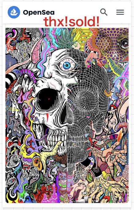 グニョグニョサイケデリックな骸骨アート420stone skull iconは @hikariagri 様に お迎えいただきました! ありがとうございます 早速1イーサの値付けも嬉しいです! #NFT #NFTart opensea.io/collection/hid…