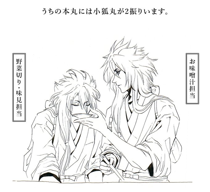 6 43 #2020年自分が選ぶ今年の4枚 小狐丸とこぎさに含みます。(女審神者います) 今年全然描いてなかった……oh 20/12/21 09:44