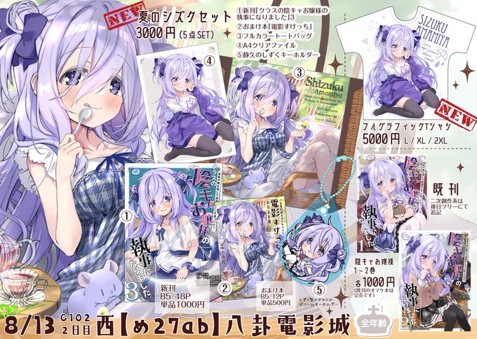 「夏のシズクセット」メロンブックス通販、初回分完売してしまったので本日再入荷しました。数に限りがありますのでお早めにどうぞ! 通販ページはこちらから⏬ 🍈メロンブックス『【C102グッズ付セット】クラスの陰キャお嬢様の執事になりました3』 melonbooks.co.jp/detail/detail.…