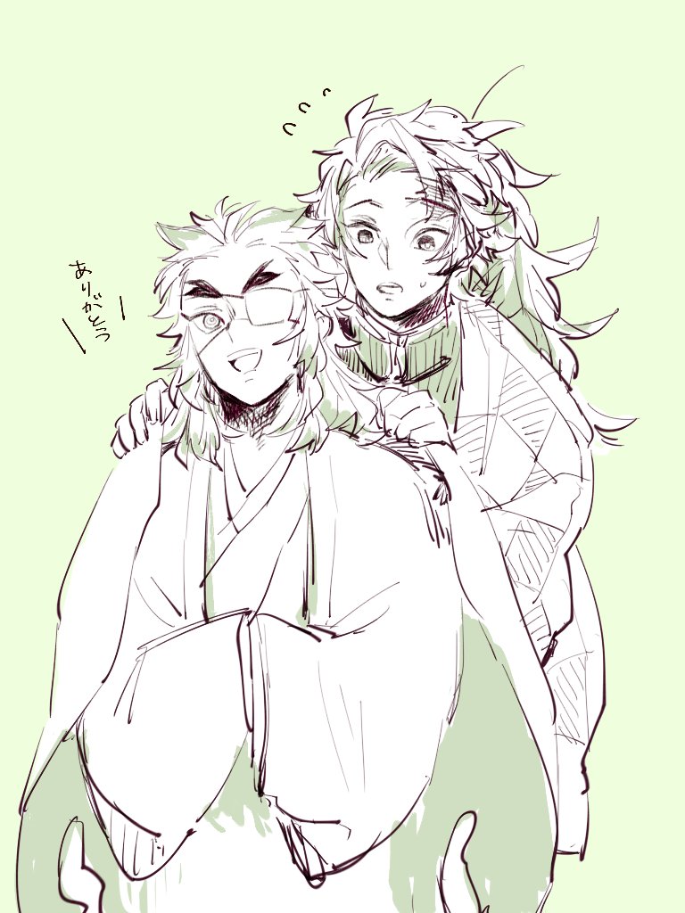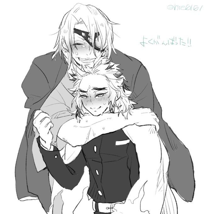 【鬼滅】炭煉(生存if) 炭「ここに居たんですか煉獄さん、まだ冷えますから」 煉「竈門少年おかえり!本日も任務ご苦労様^^」 急にmad見たりするから描きたくなるんだよね炭煉。やはりワンコが大きくなるのは夢。