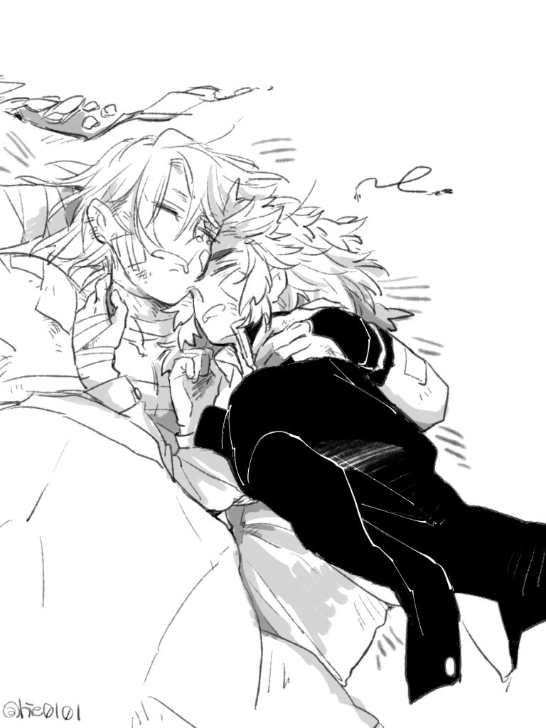 【鬼滅】宇煉 あれおかしいなちゅうを描くつもりだったのにいつの間にか泣かせてた宇煉ちゃん。もっと泣いちゃえ宇煉ちゃん。 宇にはレンキョをもふもふしながらぎゅってしてもらいたい。