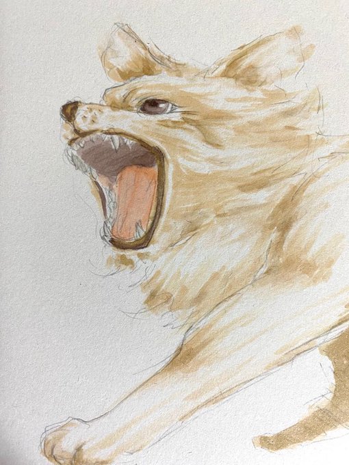 #303Cあなたに描いて欲しいんですん ともぞーさん(@gaogaogaoru )より獣ということで、わんこが吠えている瞬間を描きました。 可愛い生き物が野生をあらわにする瞬間はドキッとしますね!