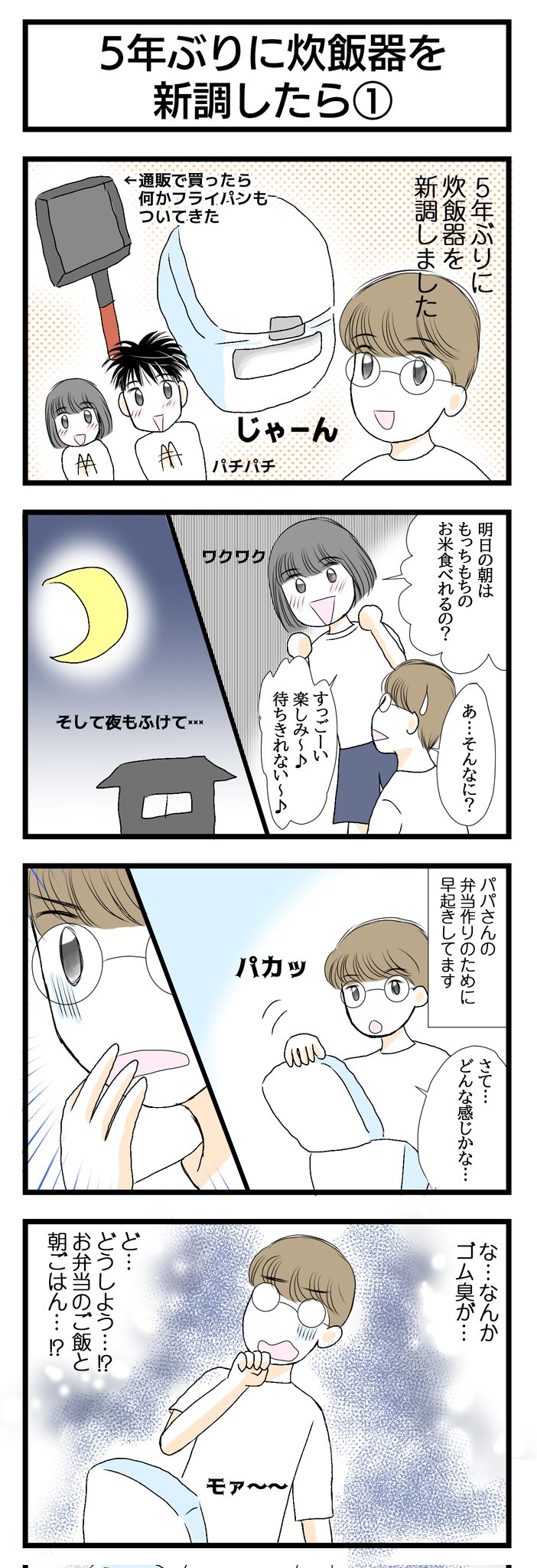 5年ぶりに炊飯器を新調した話〜。フライパンついてくる例のあのネットショップで購入しました😁(1/2)#コミックエッセイ #漫画が読めるハッシュタグ