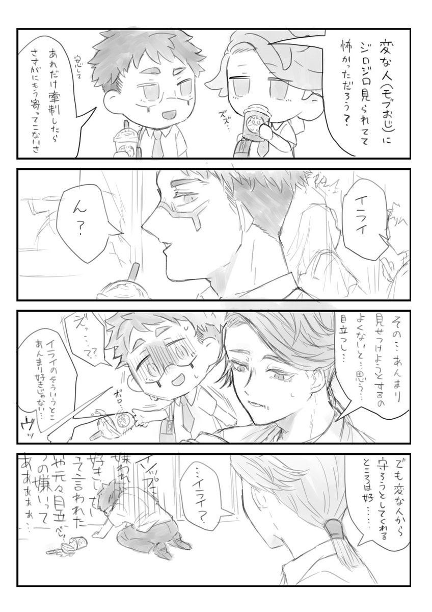 とりあえず占納オンリー無配の裏に描いてた現パロの姿のイソぬい(+バブ)を置いておく