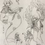 #今月描いた絵を晒そう 後半ほとんど描いてない〜!!今月はアナログ回!推しを人外にするのが楽しかった…☺️