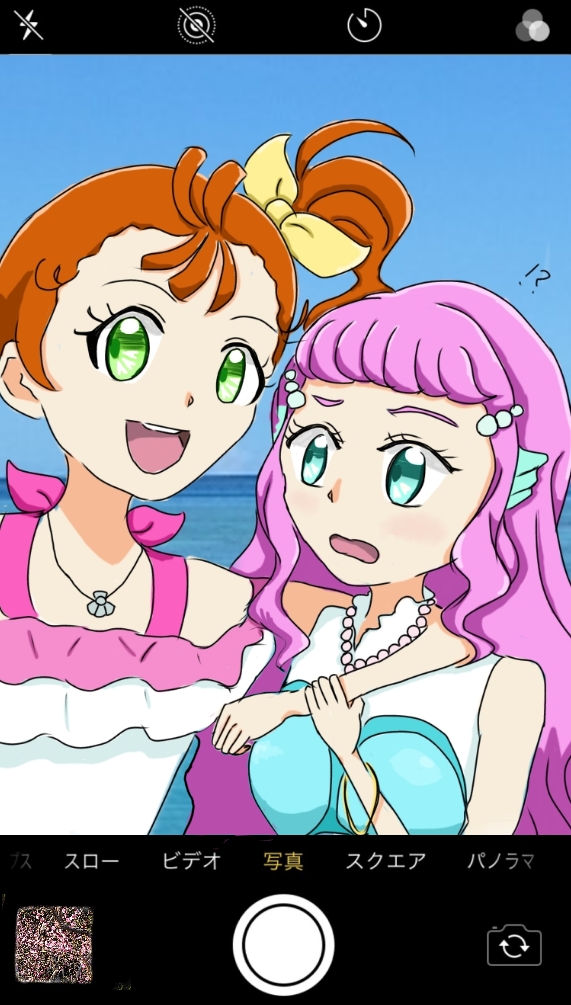 トロピカル~ジュ!プリキュアから、自撮りするまなつちゃんと巻き込まれるローラちゃんです。まなつちゃんが天然たらしであることを期待しています #プリキュア週ドロ
