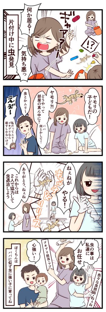 過去漫画 部屋に虫!?頼りになるのは… #育児漫画 #育児絵日記 #4コマ #漫画が読めるハッシュタグ