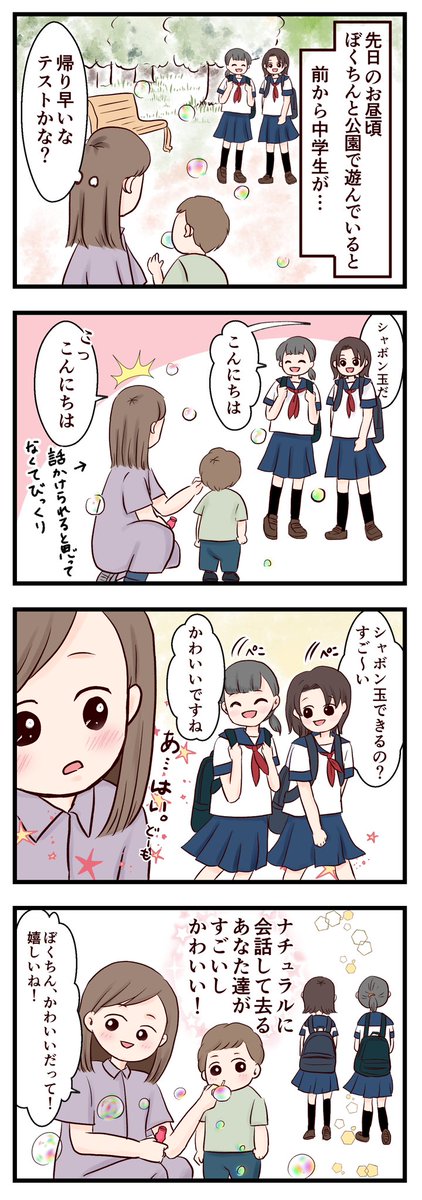 過去漫画 通りすがりに自然に会話して去る中学生 #育児漫画 #育児絵日記 #4コマ #漫画が読めるハッシュタグ