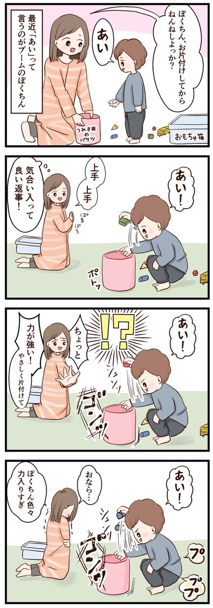 1 4 過去漫画 お片付け中、色々なところに力が入る。 #育児漫画 #育児絵日記 #4コマ #漫画が読めるハッシュタグ 23/05/27 23:01