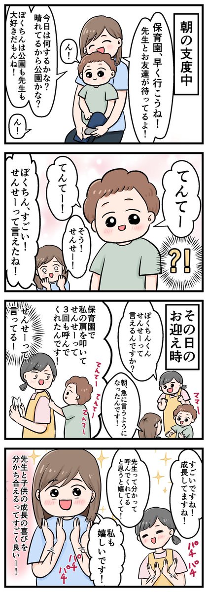 過去漫画 子供の成長の喜びを先生と分かち合う☆ #育児漫画 #育児絵日記 #4コマ #漫画が読めるハッシュタグ