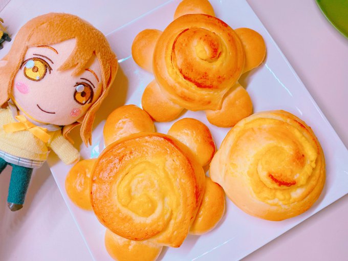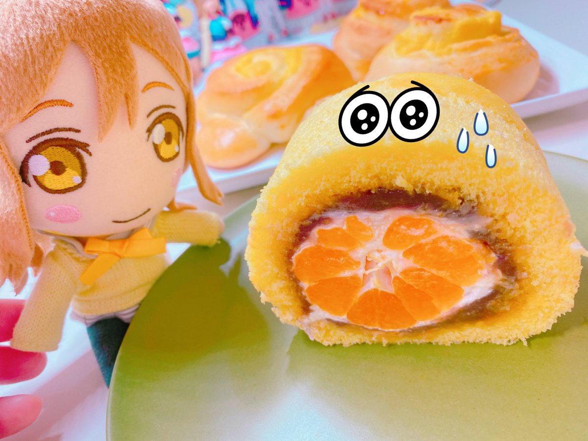 推しの好物が🍊とあんこなので 寿太郎🍊を使って みかんあんパンも作りました🍞🍊 去年作ったみかんロールケーキも 今年も再度作ってみたけど みかんがズレてしまったずら…😞 #国木田花丸誕生祭2020 #国木田花丸生誕祭2020