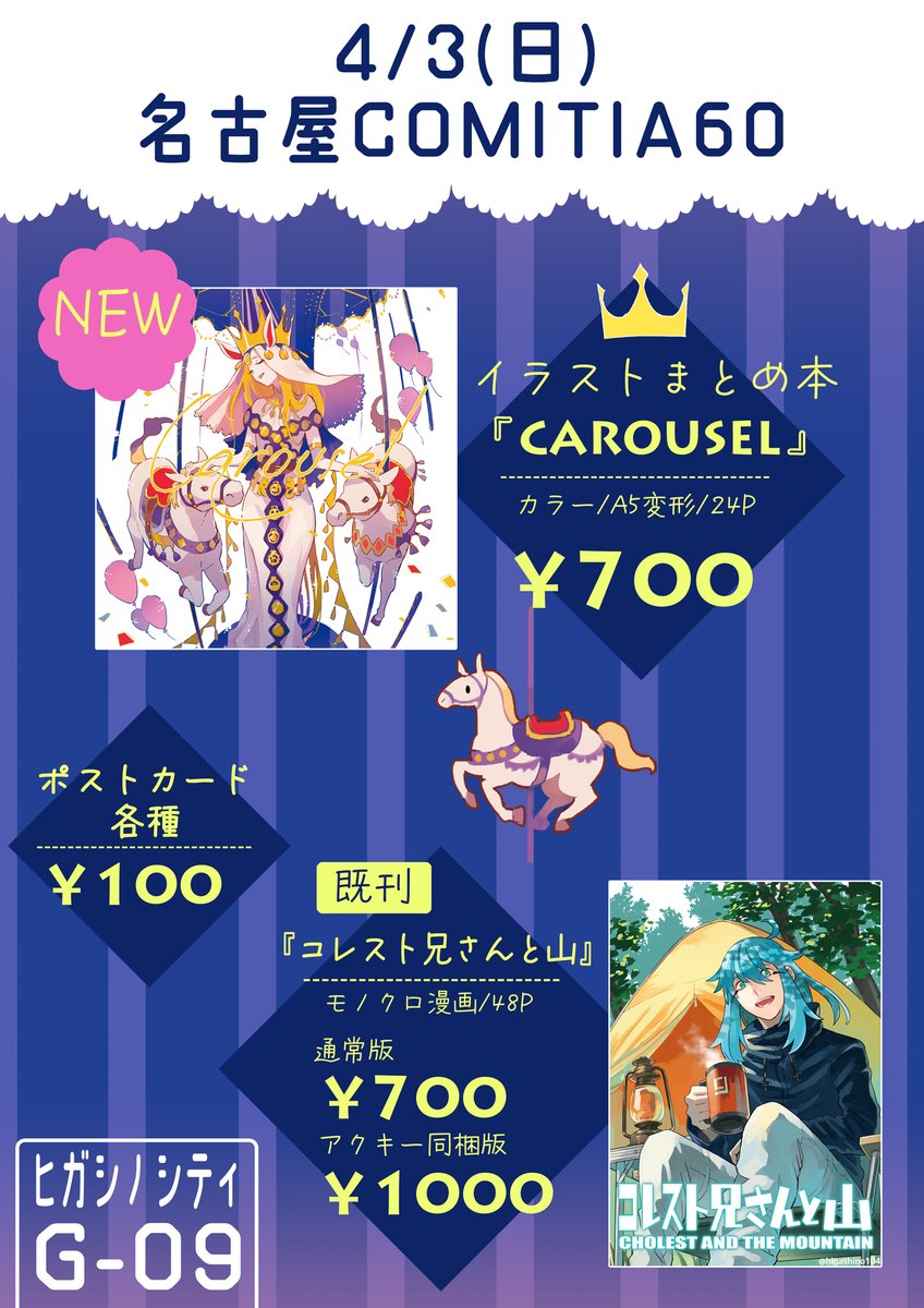 【告知】 明日4/3(日)の #名古屋COMITIA60 参加予定です。 新刊はイラストまとめ本、 スペースはG-09です。 よろしくお願いいたします。