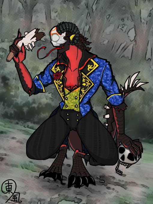 #第五人格イラスト #identityVイラスト #ルキノをすこれ 魔トカゲSSR衣装/骨笛 (※血有り、2枚目差分) 「裏切った悪魔共。次のターゲットは──人の世で堕落に甘んじているやつだ。」