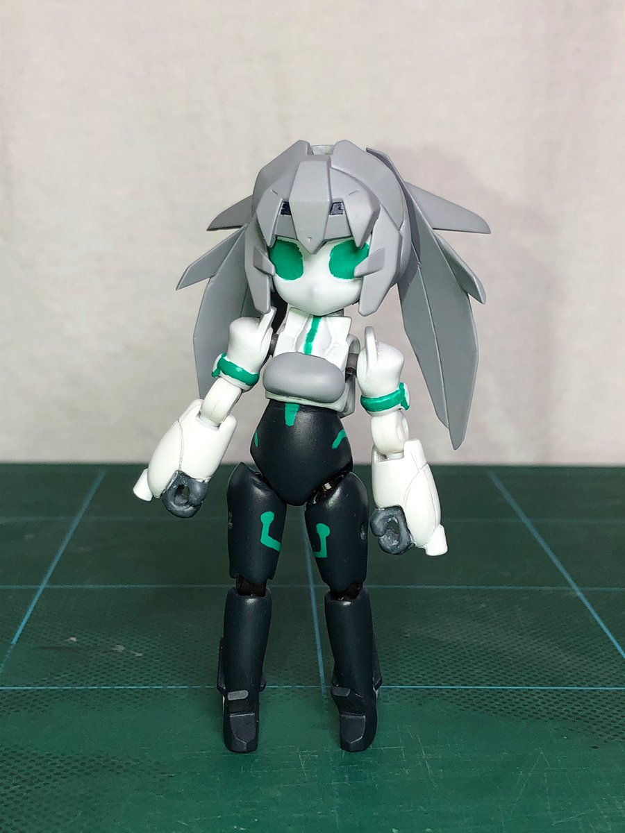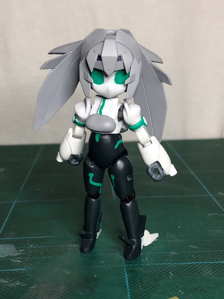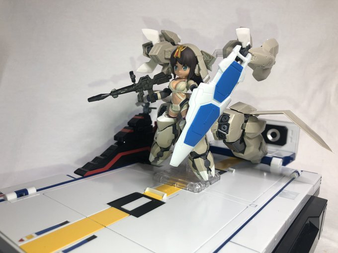 リライズ感謝祭の後から週末モデリングでちまちま作ってたDTAモビルドールメイ、ようやく完成しました。 DTAイノセンティアをベースにバーゼラルドの手足、ガンプラで二つ入ってる前髪の一つを組み合わせて後はプラ板とエポパテ製です あと尻と太ももは増量しましたw #デスクトップアーミー