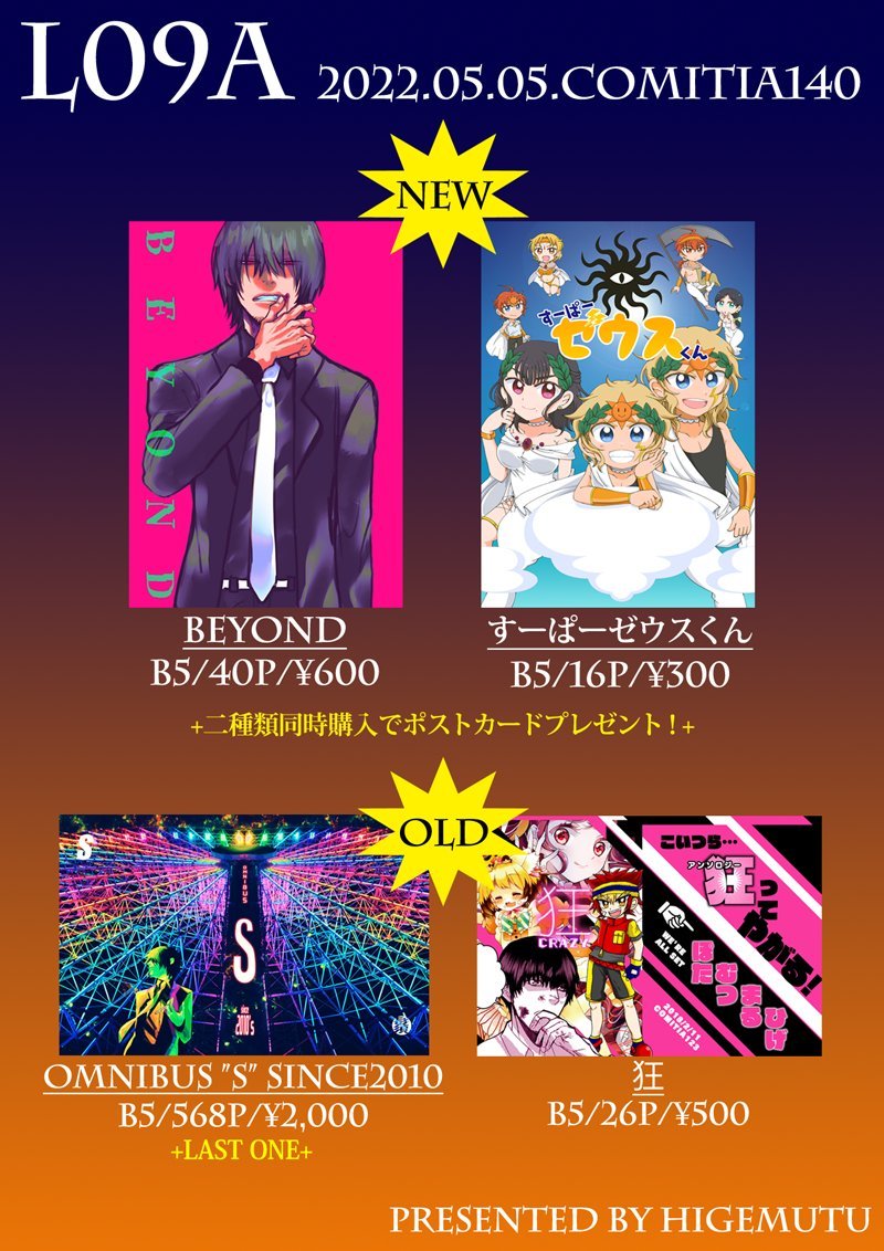【告知】 5月5日(木)コミティア140 東京ビッグサイト11:00~15:00 合同サークル「ひげむつ」feat.むっちゃん(@mutuom2) スペNo:東2「L-09a」 ⑩年ぶりの知ってる人は知ってる星座擬人化漫画の続き描きました 今までのは全部webで読めるだはんで割と極小部数でございんす #COMITIA140