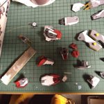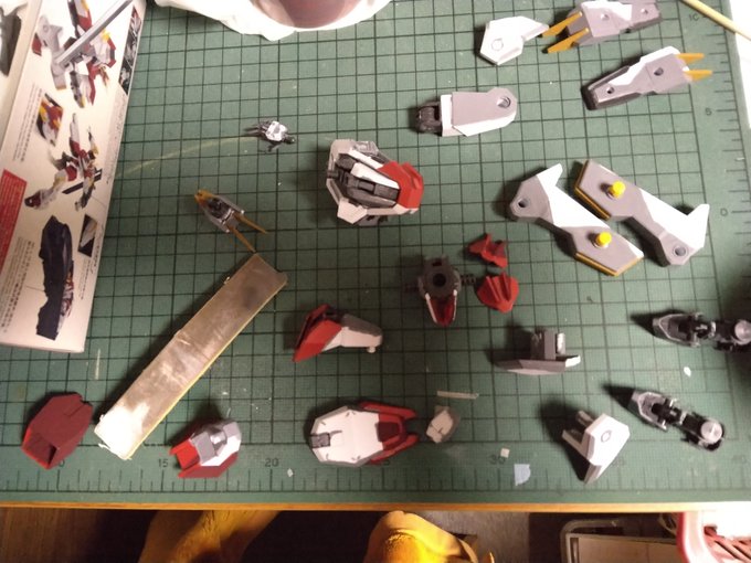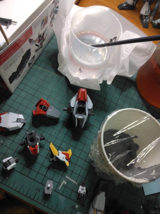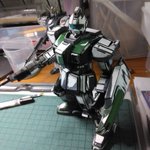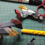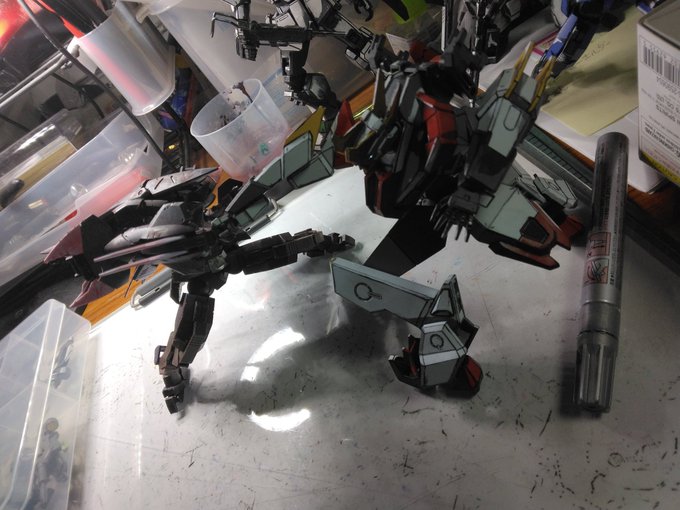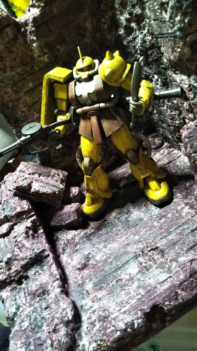 #メディオ #西市店で 開催中の #プラモデルコンテスト に出品してきました。 プラモデルコンテストは初参加。 キットは #境界戦機 #メイレスケンブ斬 (#イラスト風模型)と #ブレイディファントム(#ウェザリング)。 でもどっちかと言えば主役は岩場かもw