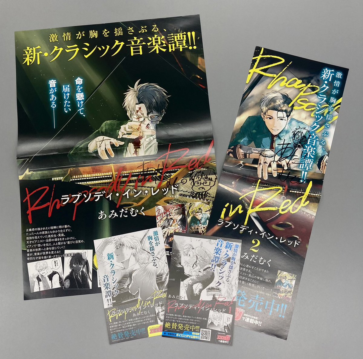 【ラプソディ・イン・レッドサイン入りポスタープレゼント🎉】 #ラプソディ・イン・レッド ②巻発売を記念して、私の直筆サイン入り《A3ポスターセット》を3名様にプレゼント✨応募の仕方は↓🎹 ① @higemoku をフォロー&このツイートをRT ②《#ラプレ2巻読みました》で感想をツイート 7月30日〆🌟