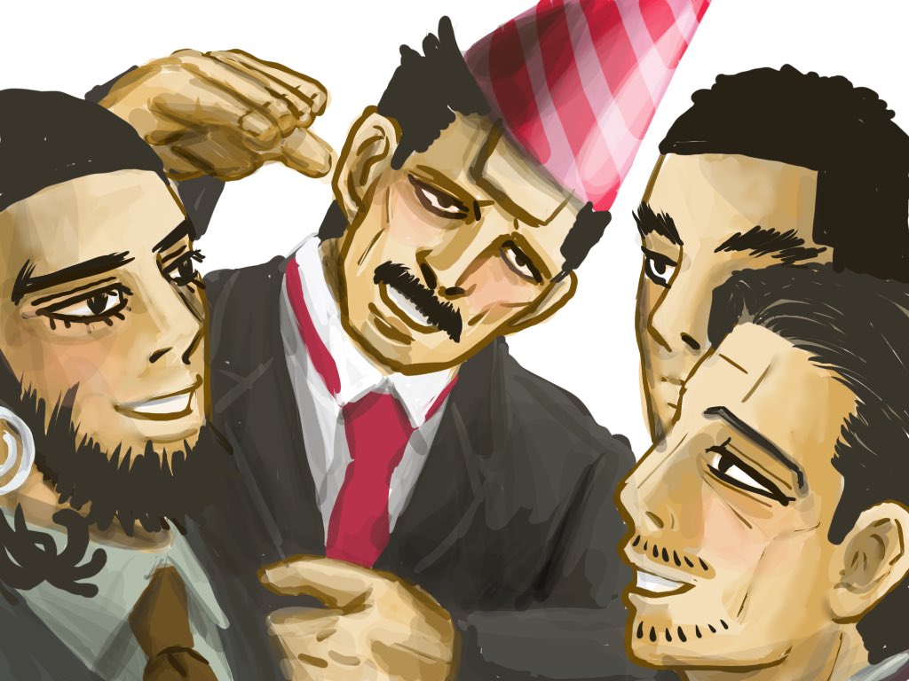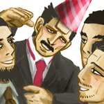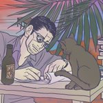 #二瓶鉄造生誕祭2023 #二瓶鉄造誕生祭2023 二瓶おじもか!? 再掲で賑やかし。 トリニダードトバゴとかアゼルバイジャンというマイナーな異国料理居酒屋。何の話してても最終的に勃起に繋がる語りしかしない名物マスター設定はオキニ