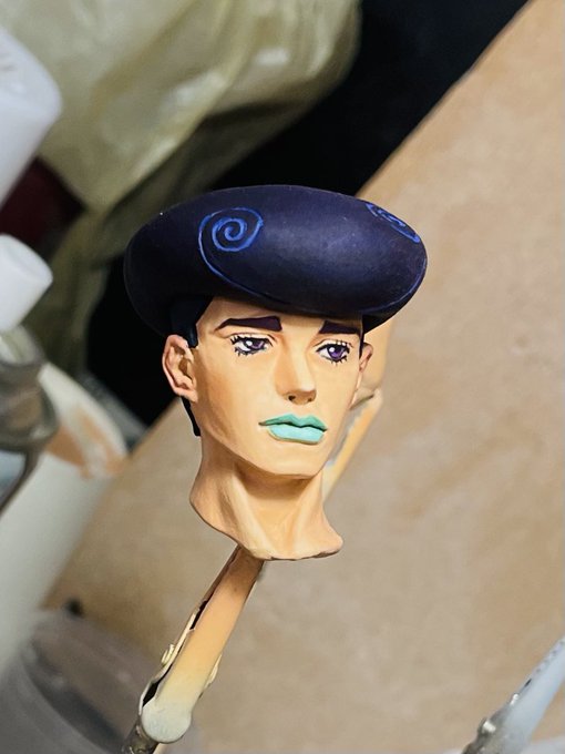 ジョニィのマグネット完成! 10巻の表紙を参考に造形と彩色 反応していただいた皆様ありがとうございました🙇🏻 光や角度で結構表情変わりますねー #スティール・ボール・ラン twitter.com/i/web/status/1…