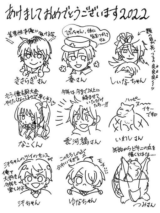 9 16 いいねくれたフォロワーたちありがとう!2022年もこんな私をよろしくネ😘 #.いいねした人のアイコンを自分の絵柄で描く 22/01/01 16:51