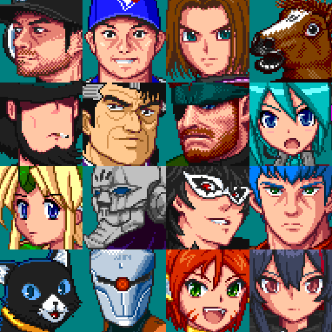 これまで作ったドット絵で反響が大きかったものを再掲。 推しじゃないものの方が受けが良いのというのがちょっと悔しい #ドット絵 #pixelart #テリー・ボガード #リヒター・ベルモンド #マリア・ラーネッド #リュウ #ニーナ #ディース