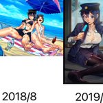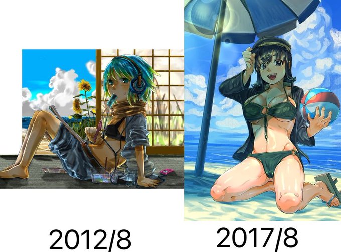 2 18 ワタシ夏場になると汗!積乱雲!水着!アイス!みたいな夏夏しい絵を絶対描いてるなって思って昔のデータを見ていたら10年くらい前にも似た雰囲気の絵を描いていたので衝撃すぎて描いた時期と絵をまとめました。 21/07/11 01:06