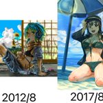 ワタシ夏場になると汗!積乱雲!水着!アイス!みたいな夏夏しい絵を絶対描いてるなって思って昔のデータを見ていたら10年くらい前にも似た雰囲気の絵を描いていたので衝撃すぎて描いた時期と絵をまとめました。