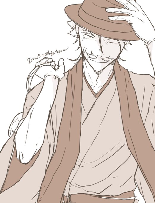 5 20 学園長な源ちゃん描いてたら和装でも襟巻きあってよいんじゃないか?ってなった落書き 23/08/15 19:31