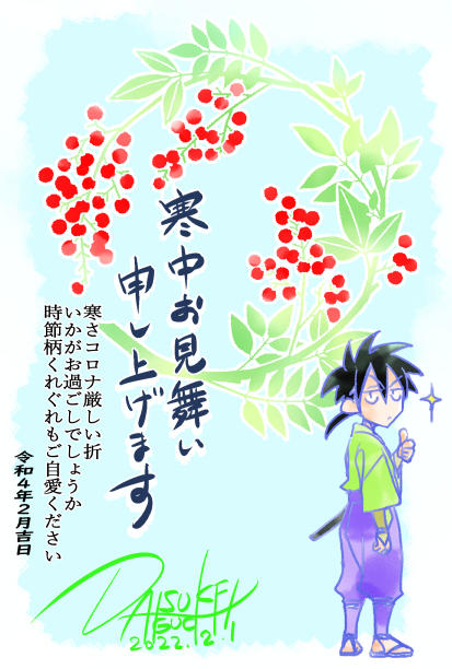 328 1057 ハピバ☆不破君 姪っ子甥っ子に懐かれる 不破君の年越し🍤 老眼鏡忘れてきてしまい 細部ぼんやり💧 たぶんまあまあ描けてる😅 22/12/31 22:30