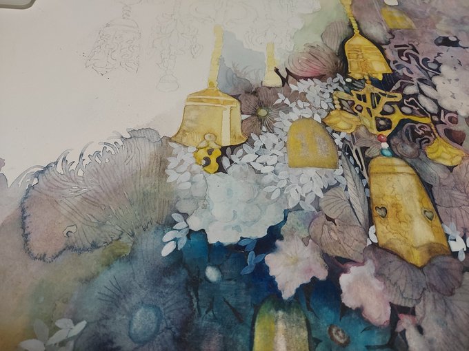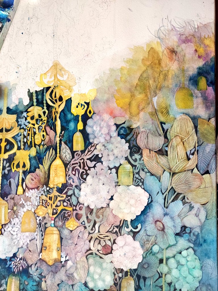 もう少しで半分! #watercolorpainting #watercolorart #art #水彩画