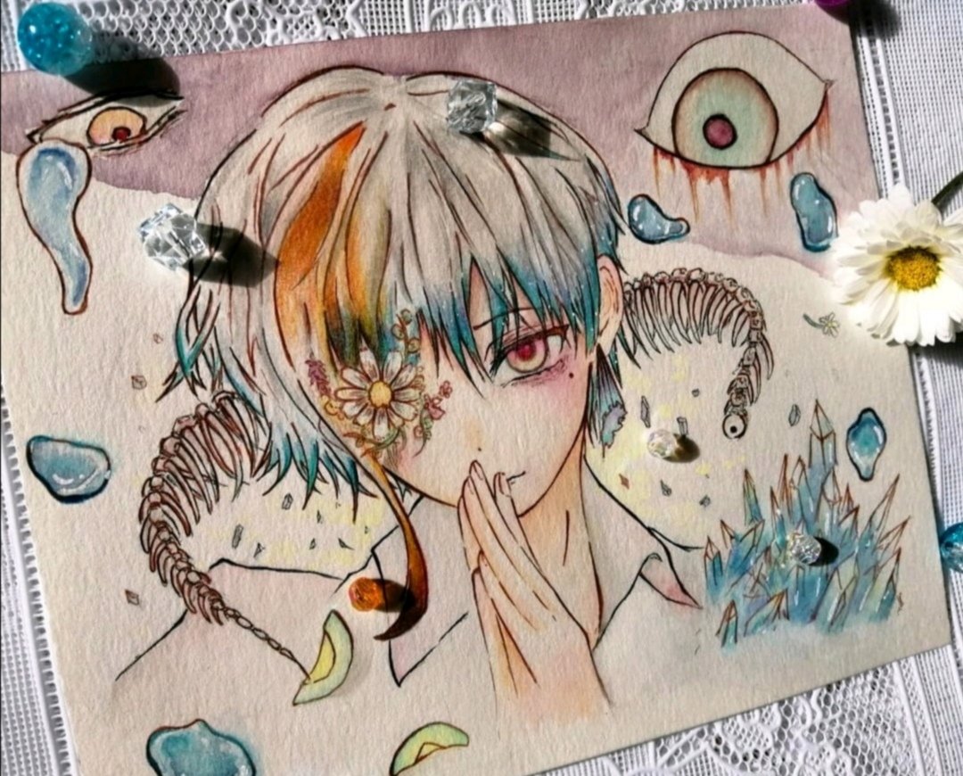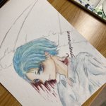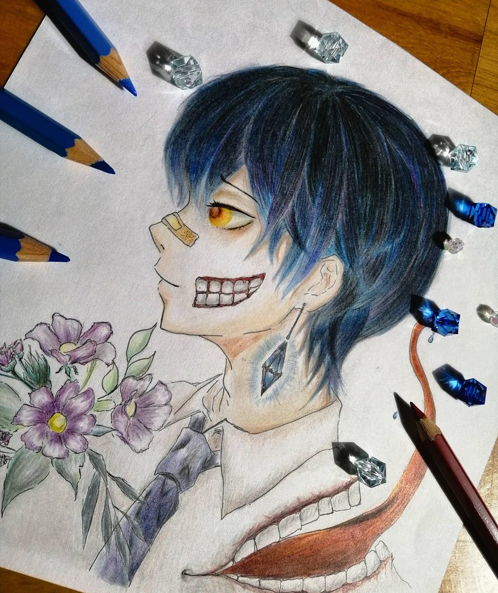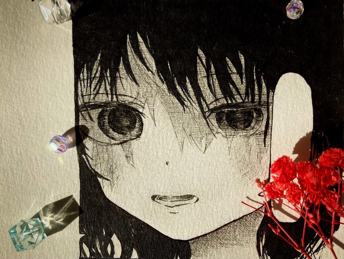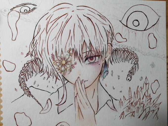 これは自粛期間に描いたやつ! このくらいから絵が好きになった☺ Twitter初めてまだ友達0人…… 難しいね💦笑 #模写 #模写イラスト #絵描きさんと繫がりたい #ペン画 #東京グール #東京喰種 #アナログイラスト #アナログ作家フェス