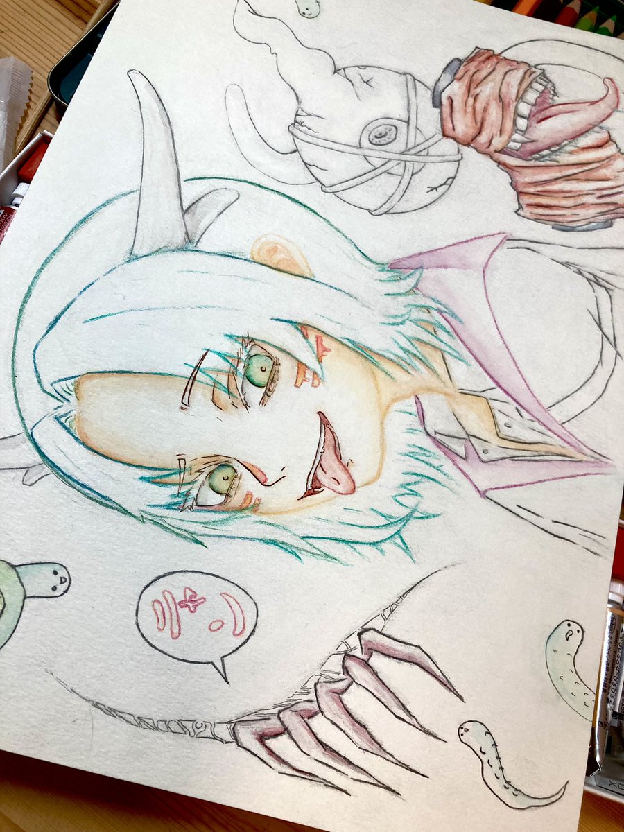 オリ絵です!(*^^*) 好きを詰め込みました☺ #色鉛筆画 #色鉛筆 #オリジナル #オリジナルイラスト #創作イラスト #アナログ絵を流してアナログ民を増やそう #アナログ作家フェス #アナログイラスト #アナログ絵描きさんと繋がりたい #絵描きさんと繋がたい #絵描きさん