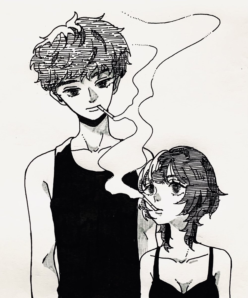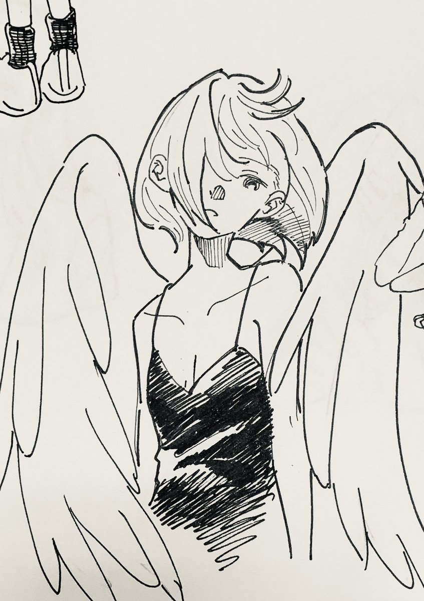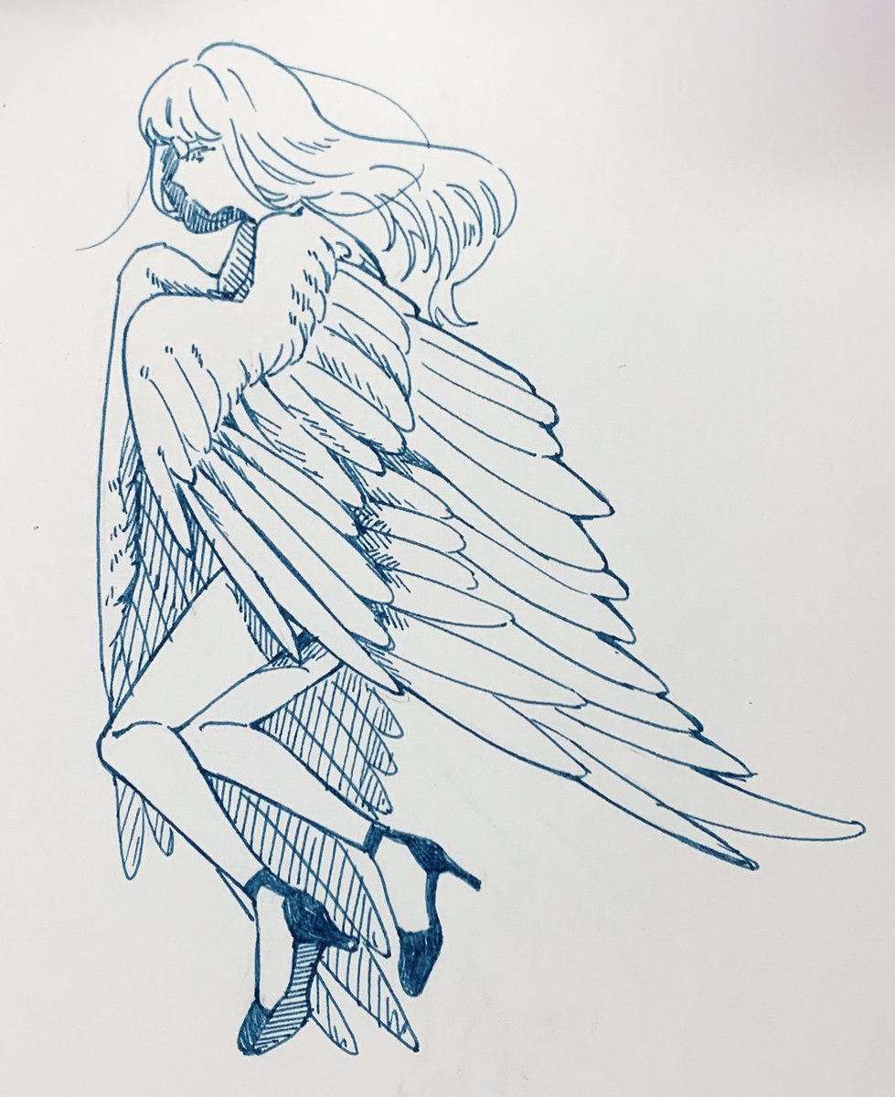 煙草燻らす天使と馬券見つめて泣く天使 #illustration #イラスト #落書き