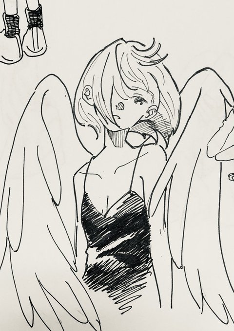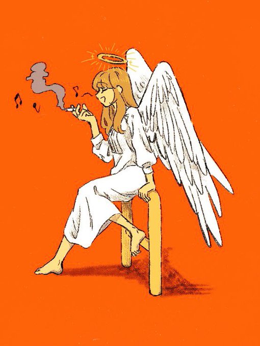 6 24 煙草燻らす天使と馬券見つめて泣く天使 #illustration #イラスト #落書き 22/02/16 18:04