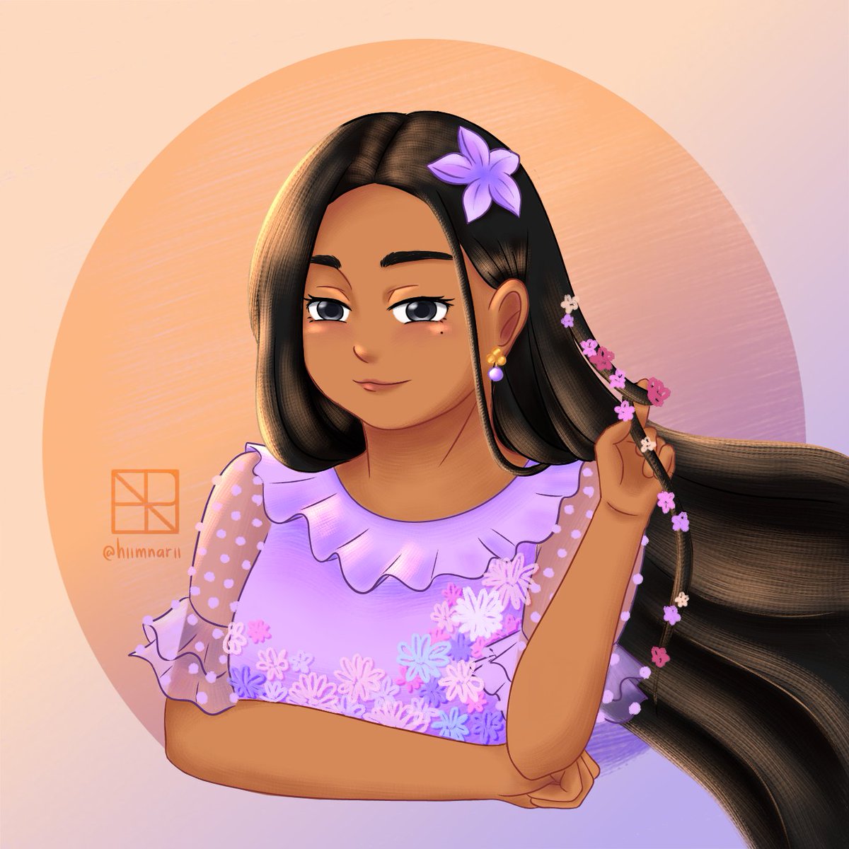 Presenting to yall our "Señorita perfecta Isabela" 💃🏻🌸🌼🌺💜 . . . #encanto #encantofanart #isabelamadrigal #ArtistOnTwitter #zonakaryaid #artidn