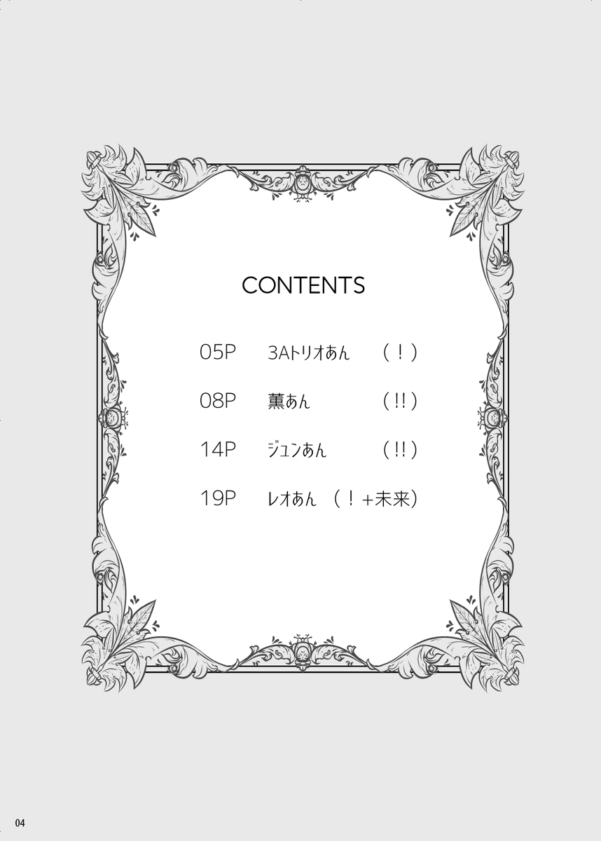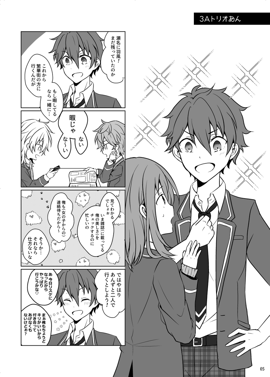 22 112 新刊サンプル作成中~3Aトリオあん、薫あん、ジュンあん、レオあんの短編集です🎉 今回は委託と併用しようと思ってて、いま調整中なので確定したら長めのサンプルとか諸々ご案内予定です🥳 相互さんお取り置き・個別郵送承りますので、お気軽にお申し付けくださいませ~🙌 ツリーにサンプル続きます 21/12/11 21:27