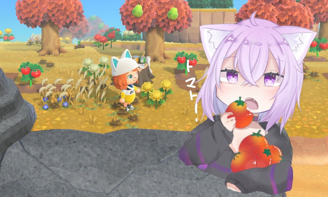 たまたま同じタイミングで🍅の島にきてた私。かなり運命を感じた。あつ森配信お疲れ様でした✨🙌 #絵かゆ #猫又おかゆ