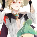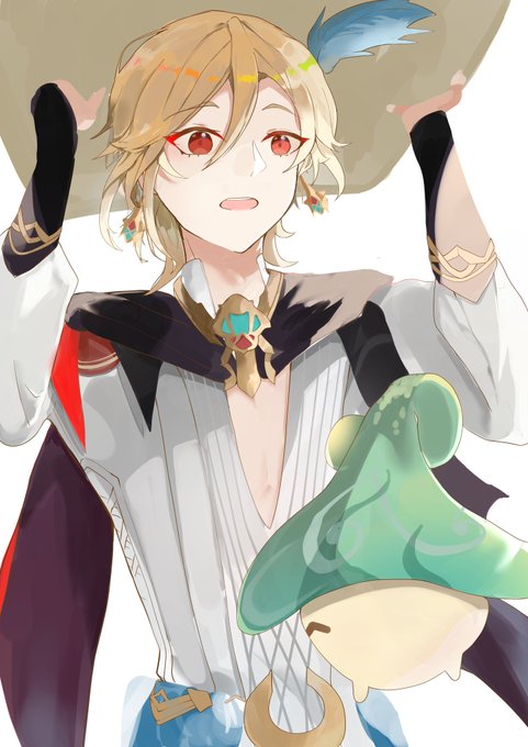 #カーヴェ #Kaveh (ガチャ当てます) #原神 #GenshinImpact #原神絵描きさんと繋がりたい #絵柄が好きっていう人にフォローされたい ・何故かキノコンに好かれるカーヴェ ・キノコンがいるから物を下ろせないカーヴェ ・でも気分は悪くないカーヴェ