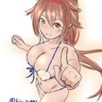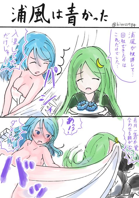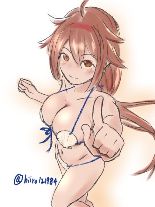 #艦これ版深夜の真剣お絵描き60分一本勝負 #艦これ版真剣お絵描き60分一本勝負_20210925 「水着・・・と言っていいんですかねこれ?」 ホタテ水着を動画レビューしてくれる青葉